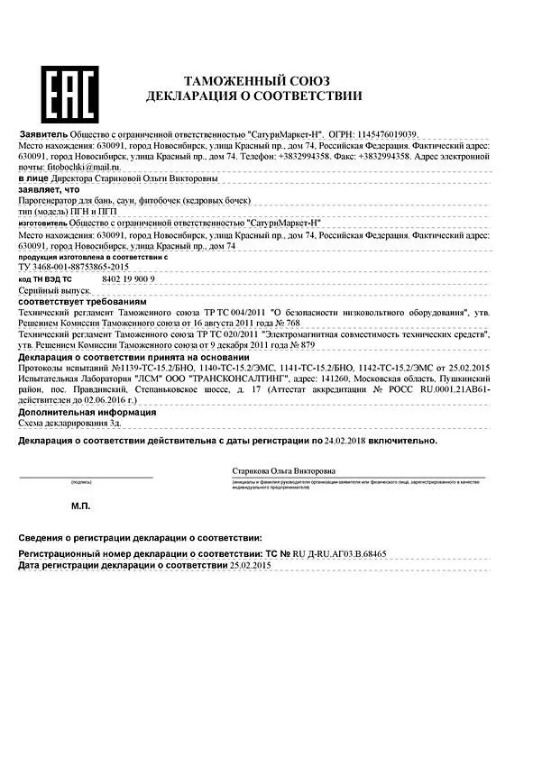 • Сертификат и Декларация Европейского союза