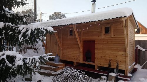 Практически год пользуемся щитовой баней. Привезли готовую, быстро установили. Вместительная, уютная, качественная. До сих пор пахнет кедром, когда топим! Всем рекомендуем!